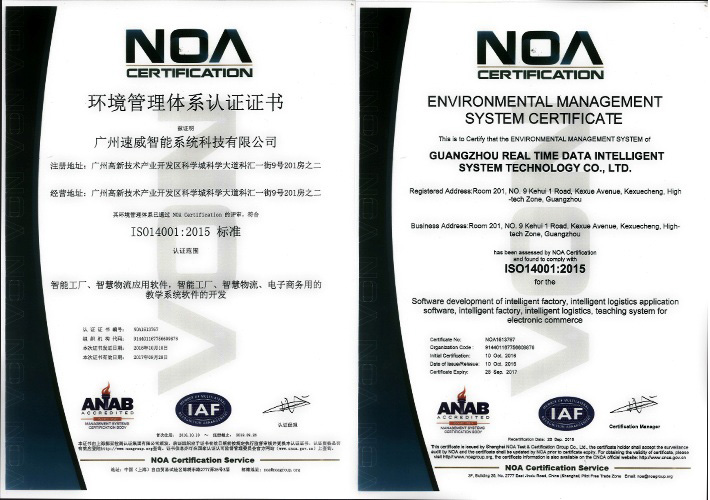 通過全體員工的努力,廣州速威智能系統(tǒng)科技有限公司(以下簡稱“廣州速威智能系統(tǒng)”)順利通過了NOA Certification ISO9001:2015質(zhì)量管理體系、ISO14001:2015環(huán)境管理體系以及GB/T28001-2011idtOHSAS18001:2007職業(yè)健康安全管理體系的認(rèn)證和審核,于2016年10月10日獲得認(rèn)證證書。此次認(rèn)證適用的范圍為智能工廠、智慧物流應(yīng)用軟件,智能工廠、智慧物流、電子商務(wù)用的教學(xué)系統(tǒng)軟件的開發(fā)。據(jù)了解,以上范圍均是2015年9月,ISO 9001:2015、ISO 14001:2015新版標(biāo)準(zhǔn)內(nèi)新修訂的。本次修訂所以影響最大,首先是因?yàn)?015CD版標(biāo)準(zhǔn)高屋建瓴,為質(zhì)量管理體系標(biāo)準(zhǔn)的長期發(fā)展規(guī)劃了藍(lán)圖,為未來25年的質(zhì)量管理標(biāo)準(zhǔn)做好了準(zhǔn)備,更加適合于企業(yè)建立整合管理體系,更加關(guān)注質(zhì)量管理體系的有效性和效率,更好增強(qiáng)企業(yè)的軟實(shí)力。