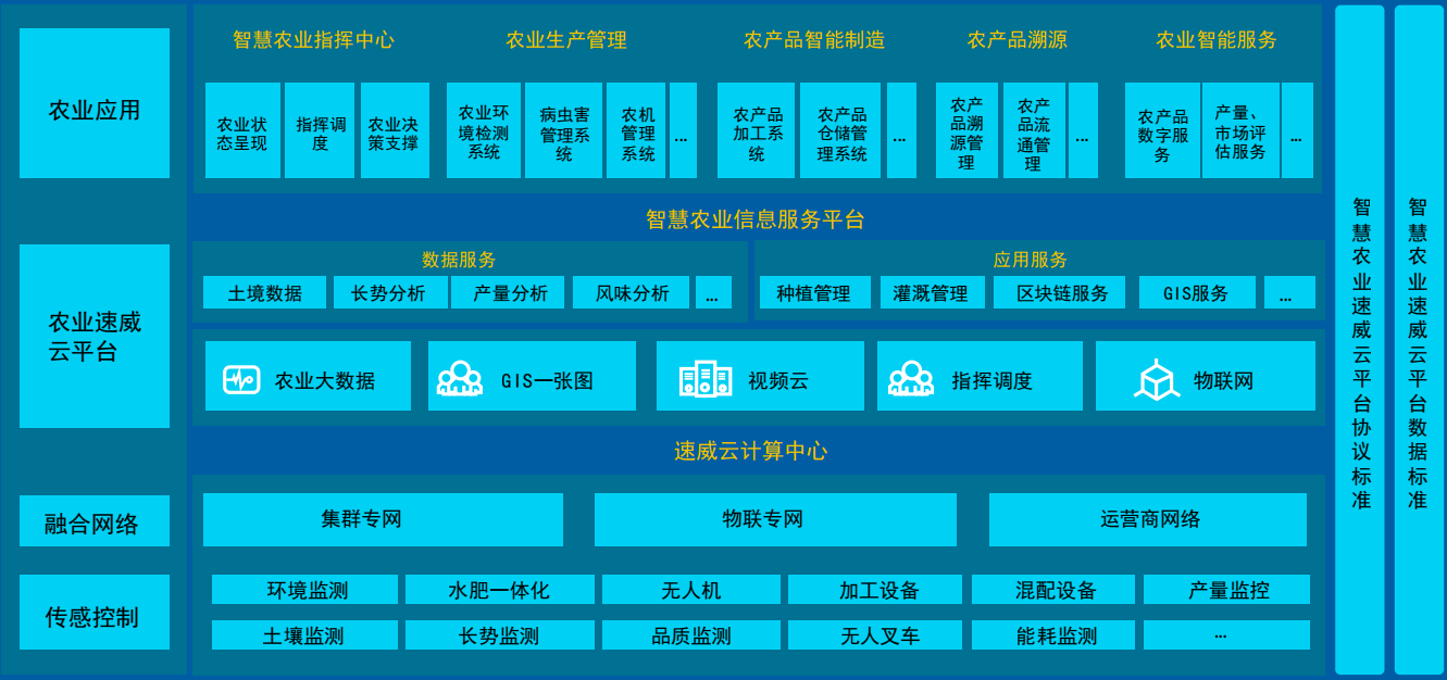 速威智能數(shù)字農(nóng)業(yè)板塊提供從農(nóng)作物培植到農(nóng)產(chǎn)品加工售賣(mài)等前中后端全產(chǎn)業(yè)鏈的軟件產(chǎn)品及開(kāi)發(fā)平臺(tái)。
