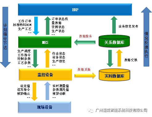 2)執(zhí)行層:實(shí)現(xiàn)面向工廠/車間的生產(chǎn)管理,如維護(hù)記錄、詳細(xì)排產(chǎn)、可靠性保障等。制造執(zhí)行系統(tǒng)(MES)在該層運(yùn)行。