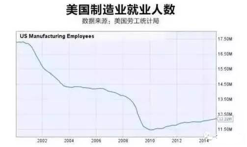 2000年以來,美國制造業(yè)就業(yè)人數(shù)總體呈下降趨勢。