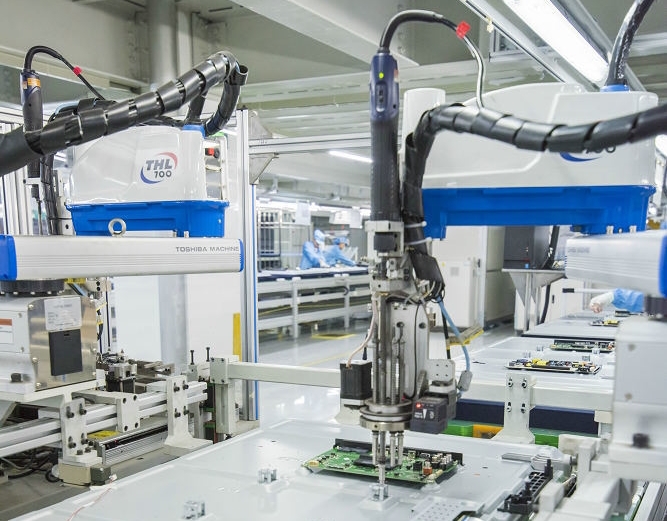 在海信電視智能工廠里,AGV小車來回穿梭于庫(kù)房與線體間,機(jī)器人、機(jī)械手和自動(dòng)化專機(jī)正有條不紊地實(shí)現(xiàn)產(chǎn)品的裝配、檢測(cè)、包裝,成品經(jīng)自動(dòng)分揀、碼垛、覆膜后,由AGV自動(dòng)運(yùn)送到指定的貨位……整個(gè)過程精準(zhǔn)而高效。下面一起觀摩: