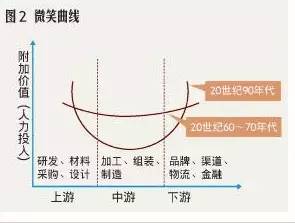 1992年,臺灣企業(yè)家施振榮提出了“微笑曲線”(Smile Curve)理論。微笑曲線認為,曲線左右兩側附加價值高,利潤空間大;而處在曲線中間弧底位置的加工、組裝、制造等,技術含量不高,附加價值低,利潤微薄。中國產業(yè)界對“微笑曲線”奉為經典并因此陷入迷惘。在這一思想指導下,中國制造業(yè)轉型升級的方向必須向所謂的價值鏈高端延伸,特別是走品牌化的道路。而面向零售市場和品牌之路是“敗九成一”的策略,風險極大,并非適用所有制造業(yè)企業(yè)。