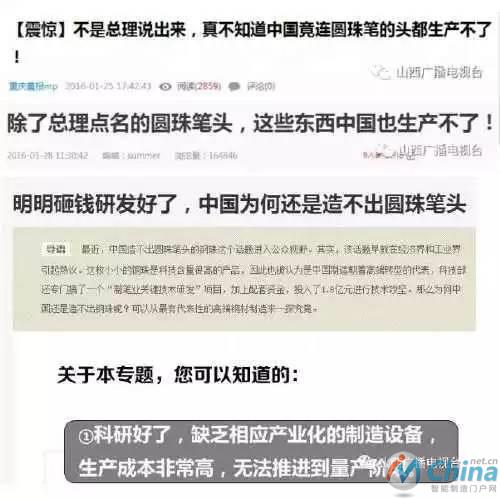 如果不是李克強總理說出來,估計好多人都不知道。3000多家制筆企業(yè)、20余萬從業(yè)人口、年產圓珠筆400多億支……中國已經成為當之無愧的制筆大國,但一連串值得驕傲的數字背后,卻是核心技術和材料高度依賴進口、劣質假冒產品泛濫的尷尬局面,大量的圓珠筆筆頭的“球珠”還需要進口。