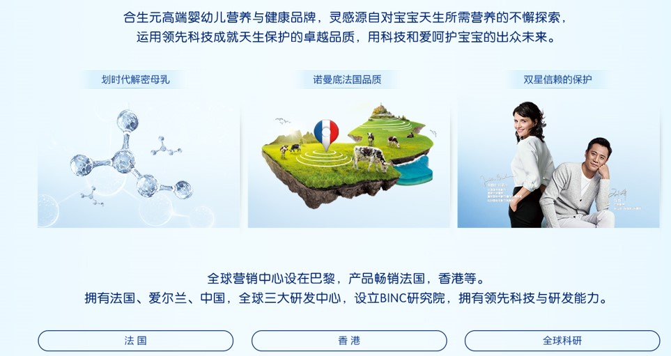 廣州市合生元生物制品有限公司_隸屬合生元集團(tuán)(現(xiàn)更名為H&H(健合)集團(tuán),香港主板上市,股票代碼HK.01112)創(chuàng)建于1999年,致力于成為全球高端營(yíng)養(yǎng)及健康產(chǎn)業(yè)的領(lǐng)導(dǎo)者,將“讓人們更健康更快樂(lè)”作為集團(tuán)使命。H&H Group為健合集團(tuán)的英文簡(jiǎn)稱,其中H&H代表的就是Health and Happiness。健合集團(tuán)通過(guò)國(guó)際化的布局,提供高端的產(chǎn)品和服務(wù),從而發(fā)展成在中國(guó)、法國(guó)、美國(guó)、澳大利亞擁有四大生產(chǎn)、研發(fā)中心,產(chǎn)品聚焦全球高端家庭營(yíng)養(yǎng)與護(hù)理領(lǐng)域,行銷全球20多個(gè)國(guó)家和地區(qū),在中國(guó)嬰幼兒營(yíng)養(yǎng)市場(chǎng)以及澳洲維生素及草藥和礦物補(bǔ)充劑市場(chǎng)均具有領(lǐng)先地位的上市公司。H&H(健合)集團(tuán)旗下匯聚四大高端品牌:澳大利亞銷量領(lǐng)先的自然健康品牌Swisse,法國(guó)高端嬰幼兒護(hù)理用品品牌Dodie,美國(guó)36年歷史有機(jī)品牌Healthy Times,以及一直致力于嬰幼兒市場(chǎng)的高端品牌Biostime合生元。