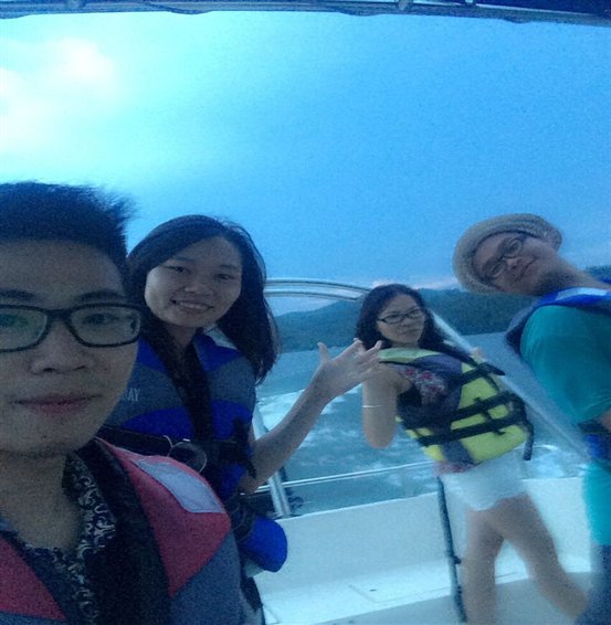 大家分批乘坐著游艇享受著速度帶來(lái)的快感