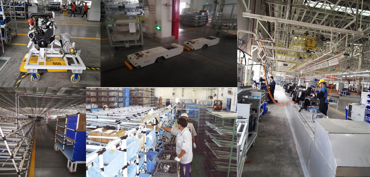 北汽福田發(fā)動機組裝線電子標(biāo)簽+AGV