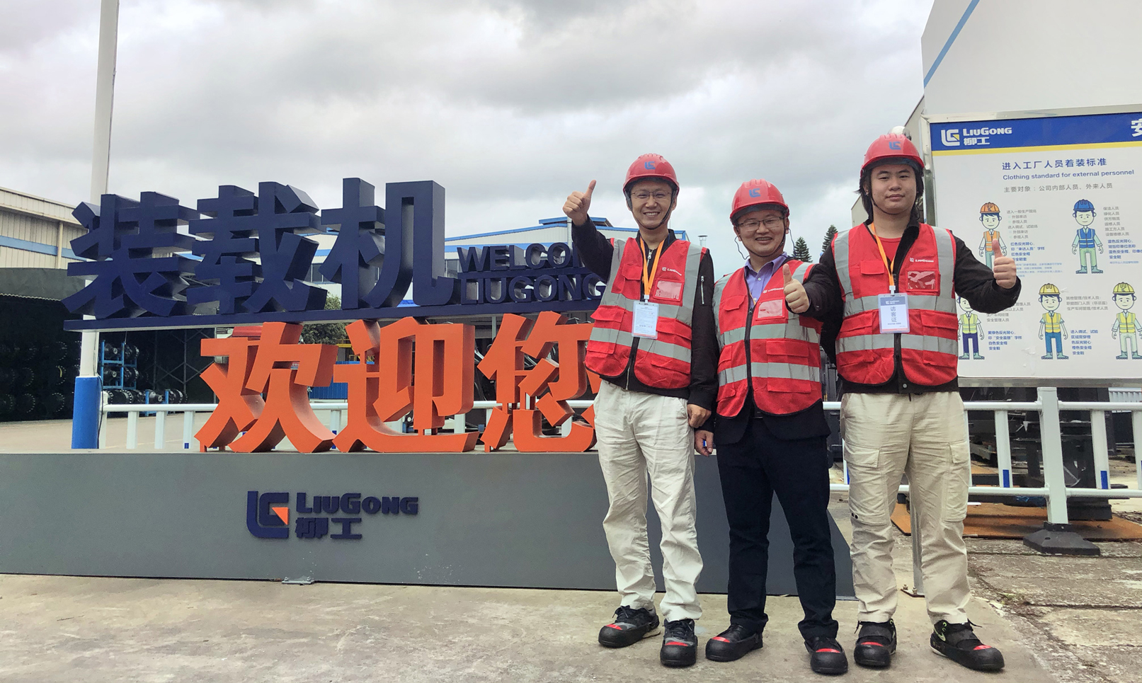 ▲速威智能銷售總監(jiān)梁總(中)與柳工項(xiàng)目成員合影