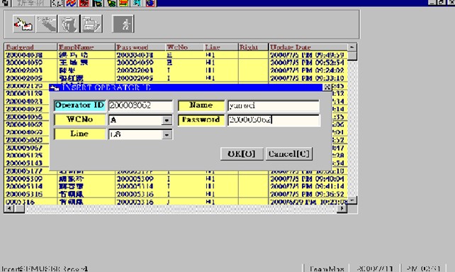 所有的生產(chǎn)線員工都必須在這里進(jìn)行定義,工人上線、下線都必須刷卡,否則系統(tǒng)會(huì)報(bào)警,并不許其進(jìn)行生產(chǎn)。
